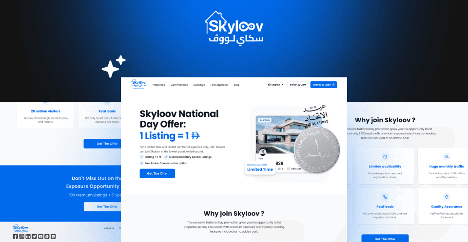 Property portal designed for a Dubai real estate brokerage to showcase listings and help users explore homes across the UAE.
