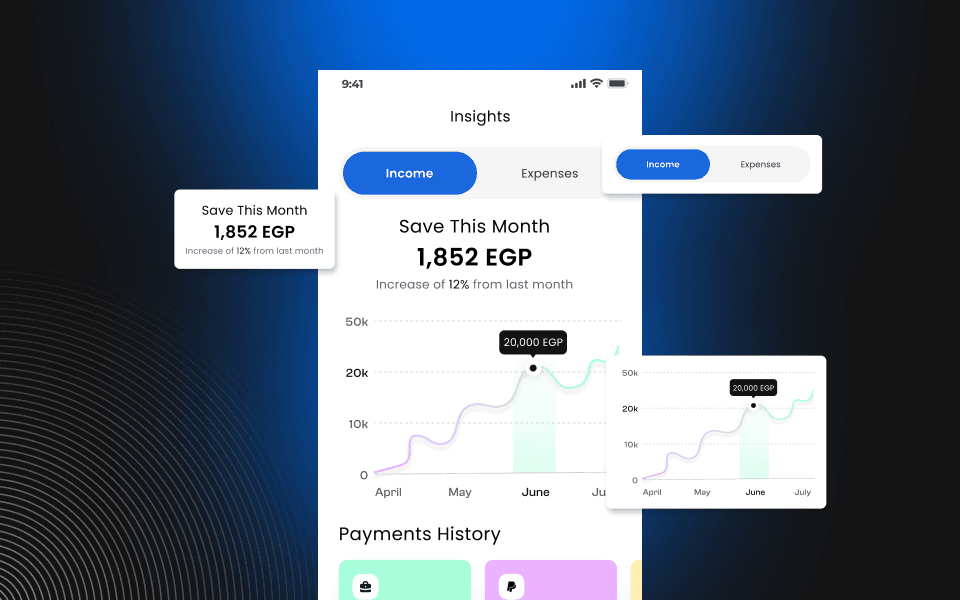 • Built an insights screen to visualize income and expenses trends